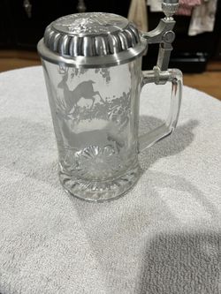Vintage FIYE Italian Crystal Pewter Lid Stein with White Tail Deer Stag Designs $25Allentown, PA