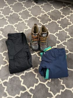 Boys Youth Columbia Omni-Heat Snow Jacket Pants Set Size L 14/16 + North Face Camo Boots 9$120Chandler, AZ
