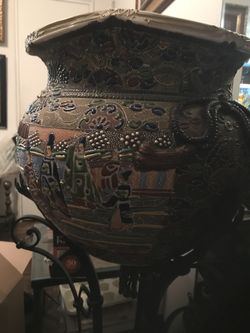 Antique Chiness vase or pot hand crafted well done amazing job including wonderful metal stand$300Queens, NY