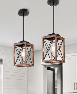 New In Box 2 Pack Farmhouse Pendant Light, Metal Hanging Light Fixture with Wooden Grain Finish, 48 Inch Adjustable Pipes for Flat and Slop Ceiling, $50Belle Isle, FL