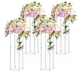 New. 4 Pieces 28 Inch Tall Acrylic Vase Wedding Centerpieces Clear Flower Stand Column Geometric Floral Vase Elegant Display Holder for Birthday Part$55Belle Isle, FL