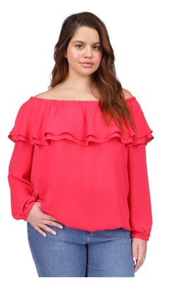 NWT Michael Kors Deep Pink Ruffle Off-Shoulder Blouse 0X Plus$60Port Acres, TX