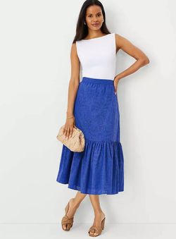 Ann Taylor Size 8 Petite Eyelet Gathered Flounce Midi Skirt in Dazzling Blue$25Port Acres, TX