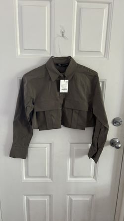Zara Crop Top Long Sleeve Front Pockets Forest Green XS NWT$25Miami, FL