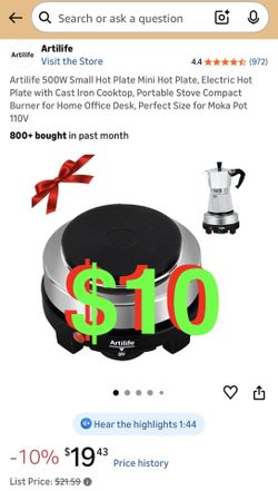 500W Small Hot Plate Mini Hot Plate, Electric Hot Plate with Cast Iron Cooktop, Portable Stove Compact Burner for Home Office Desk, Perfect Size for M$10Rancho Cucamonga, CA