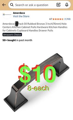 (8-each) Oil Rubbed Bronze 3 Inch(76mm) Hole Centers Kitchen Cabinet Pulls Hardware Kitchen Handles for Cabinets Cupboard Handles Drawer Pulls$10Rancho Cucamonga, CA