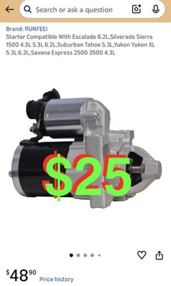 Starter Compatible With Escalade 6.2L,Silverado Sierra 1500 4.3L 5.3L 6.2L,Suburban Tahoe 5.3L,Yukon Yukon XL 5.3L 6.2L,Savana Express 2 4.3L$25Alta Loma, CA
