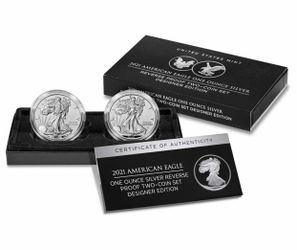 American Eagle 2021 One Ounce Silver Reverse Proof Two-Coin Set Designer Edition$450Minneapolis, MN