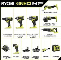 RYOBI ONE+ HP 18V Brushless Cordless 8-Tool Combo Kit with 4.0 Ah and 2.0 Ah HIGH PERFORMANCE Batteries, Charger, and Bag$500Minneapolis, MN