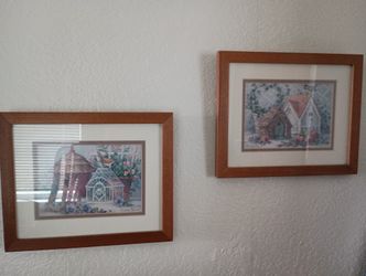 Set of 2 Vintage Cottage-Style Bird Wall Art – Wooden Frames – Pastel Colors