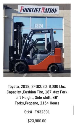 Toyota forklift 8FGCU30$23,900Whittier, CA