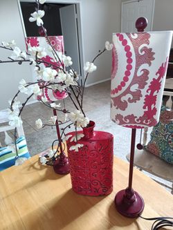 Red lamp decor set Target 3 pieces 2 table lamps and 1 red vase