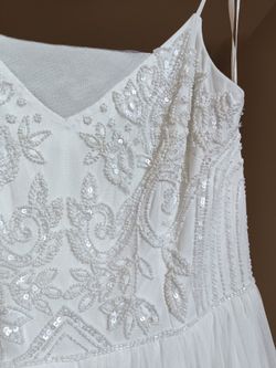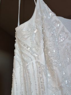 Adrianna Papell White bead embroidered dress Size 8 Ivory pleated floor length maxi
