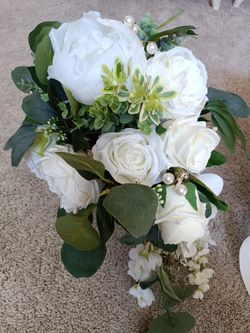 3 Ivory Bridal Bouquets of artificial flowers White, vases not included