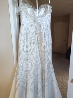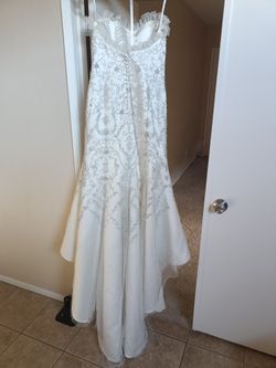 Oleg Cassini White bead embroidered wedding dress Size 10 Ivory mermaid style with a sweetheart neckline