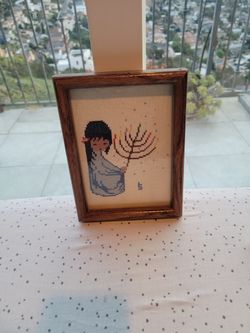 Vintage Framed Cross Stitch De Grazia Hanukkah Festival of Lights Art$25Spring Valley, CA