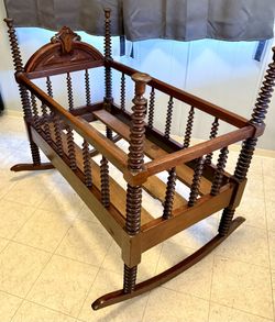 Antique Victorian Jenny Lind Walnut Spool Turned Spindle Rocking Cradle Crib Bassinet$385Philipsburg, MT