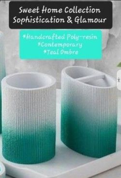 Toothbrush Holder and Tumbler Cup Teal Ombre Bathroom Accessory $8Richmond, TX