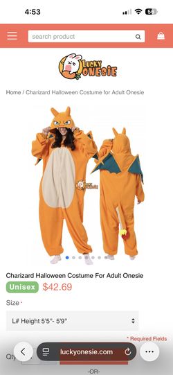 Charizard Onesie Costume - Large (Adult)$50Covina, CA