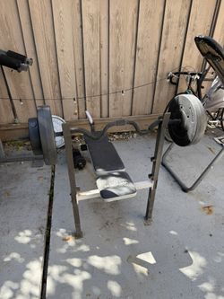 Weider 155 Weight Bench + Barbell & Weights – Full Setup$70Fremont, CA