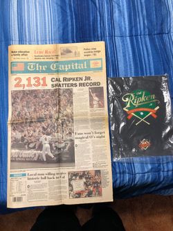 Cal Ripken Jr. newspaper 2131 game record with book$25Millersville, MD