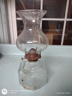 Vintage Oil/Kerosene Lamp with Iridescent Chimney