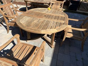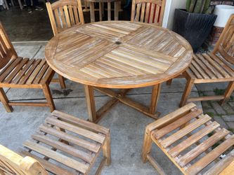 Round 55” teak table and 6 matching teak chairs (made by oceanic teak) Located in concord Recently cleaned and teak oiled Heavy and sturdy No damag$1,600Concord, CA