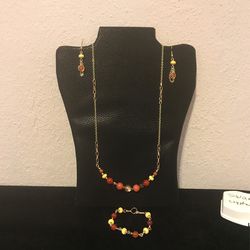 necklace, earrings and bracelet, agate, coral and swarovski crystal set$40Fort Bliss, TX