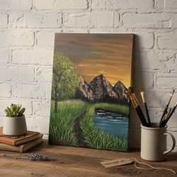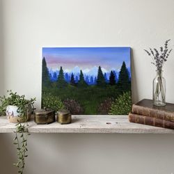 Hand-Painted Mountain Landscape Canvas | Pine Forest & Sunset Art | Home Decor$37Cortland, NY