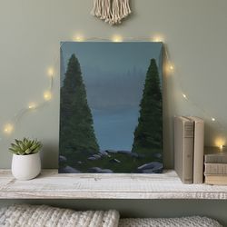 Original Misty Forest Acrylic Painting - Moody Pine Trees & Lake$125Cortland, NY