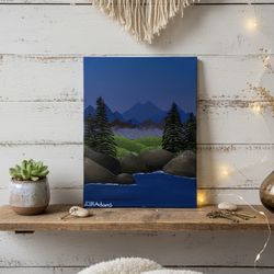 Original Mountain Landscape Painting – Night Lake & Forest Scene$45Cortland, NY