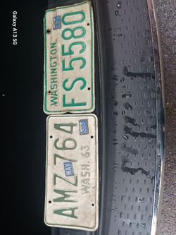Vintage 1963 Washington State License Plates AMZ 774 & FS 5580 Green & White Lot Of (2) Original Items $60Kent, WA