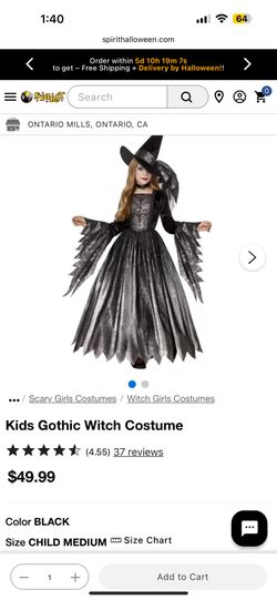New Spirit Gothic Witch Halloween Costume For Child $26Rancho Cucamonga, CA