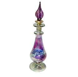 Vintage Perfume Bottle with Dauber Hand Blown Glass 12" Tall Purple Gold$45Anaheim, CA
