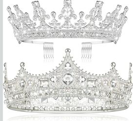 2 Pcs Silver Tiara Crowns Prom King and Queen Crowns Set Valentine's Day Costume Hair Accessory for Men Women King Queen Prince Princess Tiara for Bir$20Miami Gardens, FL