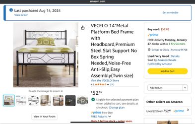 VECELO 14"Metal Platform Bed Frame with Headboard,Premium Steel Slat Support (Twin size)$50Pomona, CA
