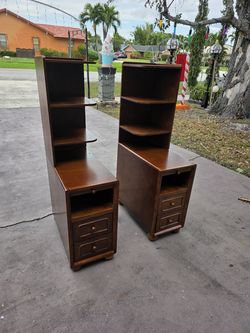 SET OF 2 NARROW Solid Wood End Table/Nightstands with Drawers, shelves, pull-out tray Reversible Corners Shelves, Walnut open box new read description$395Wellington, FL