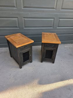 Ashley Furniture set of 2 Solid Wood Black End Tables with charger/AC outlets read description for details $395Wellington, FL
