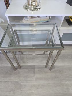 Mid Century Modern Chrome Faux Bamboo Glass Top Nesting Tables - Set of 2$275West Palm Beach, FL