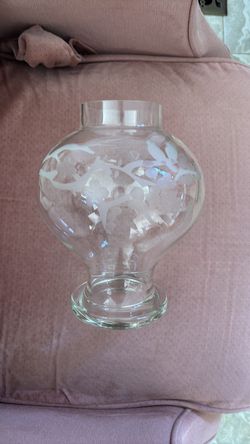 Clear ginger jar with etched two birds and cherry blossoms$25Ontarioville, IL