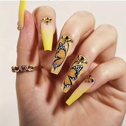 Extra Long Coffin Gradient Yellow Butterfly Press-On Nails$15Houston, TX