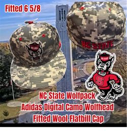 NC State Wolfpack Adidas Digital Camo Wolfhead Baseball Fitted Wool Flatbill Hat 6 5/8$25Cary, NC
