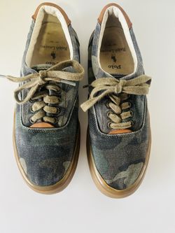 EUC POLO Ralph Lauren THORTON Leather TRIM Dark CAMO Canvas SNEAKERS Men’s 8D$35Houston, TX