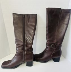 Michelle D. Tall Brown Chocolate Riding Boots Womens Leather Stretch Zipper 7.5$30Houston, TX