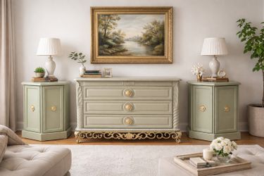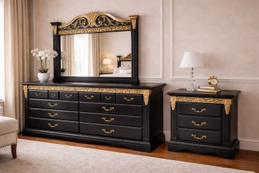 Solid Wood Black & Gold Dresser Set – Mirror + Nightstand$690San Diego, CA
