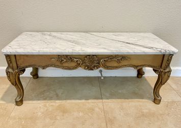 Vintage French Louis XVI Style Low Console Accent Gold Table With Marble Top Bed Bench$200Stockton, CA