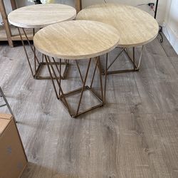 3pc Coffee and End Table Set Faux Cream/Gold Metal Base $200Palmdale, CA