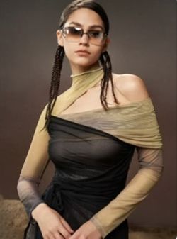 Cider Asymmetrical Sheer Layered Off-Shoulder bodysuit in hombre - Sm/Sz 4$25Lawrence Township, NJ