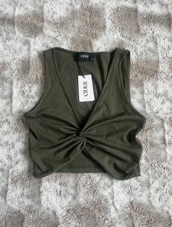 Cider Olive Twist-Knot Ribbed Crop Tank in size S/4$15Lawrence Township, NJ