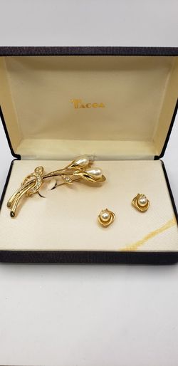 Vintage Brooch & Pair of Earrings/Rhinestone & Faux Pearl. Firm Price $10San Diego, CA